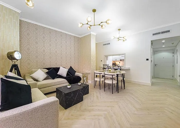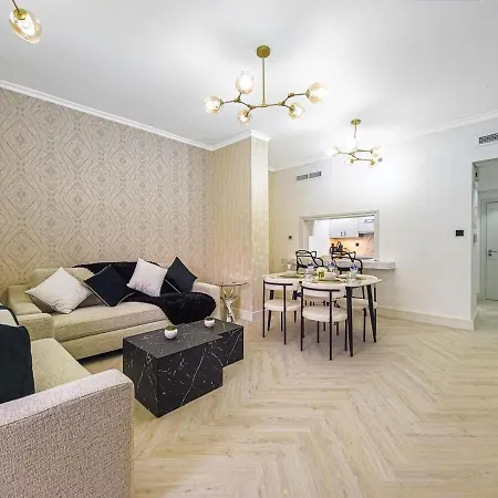 Le domicile de 88 m^2 est commodément situé dans le quartier "Centre de Dubaï", à 15 km de l'aéroport de Dubaï Creek SPB. Le Dubai Mall est à une distance à pied de 15 minutes de Luxury 2-Bed Condo Full Burj Khalifa Lights View!.